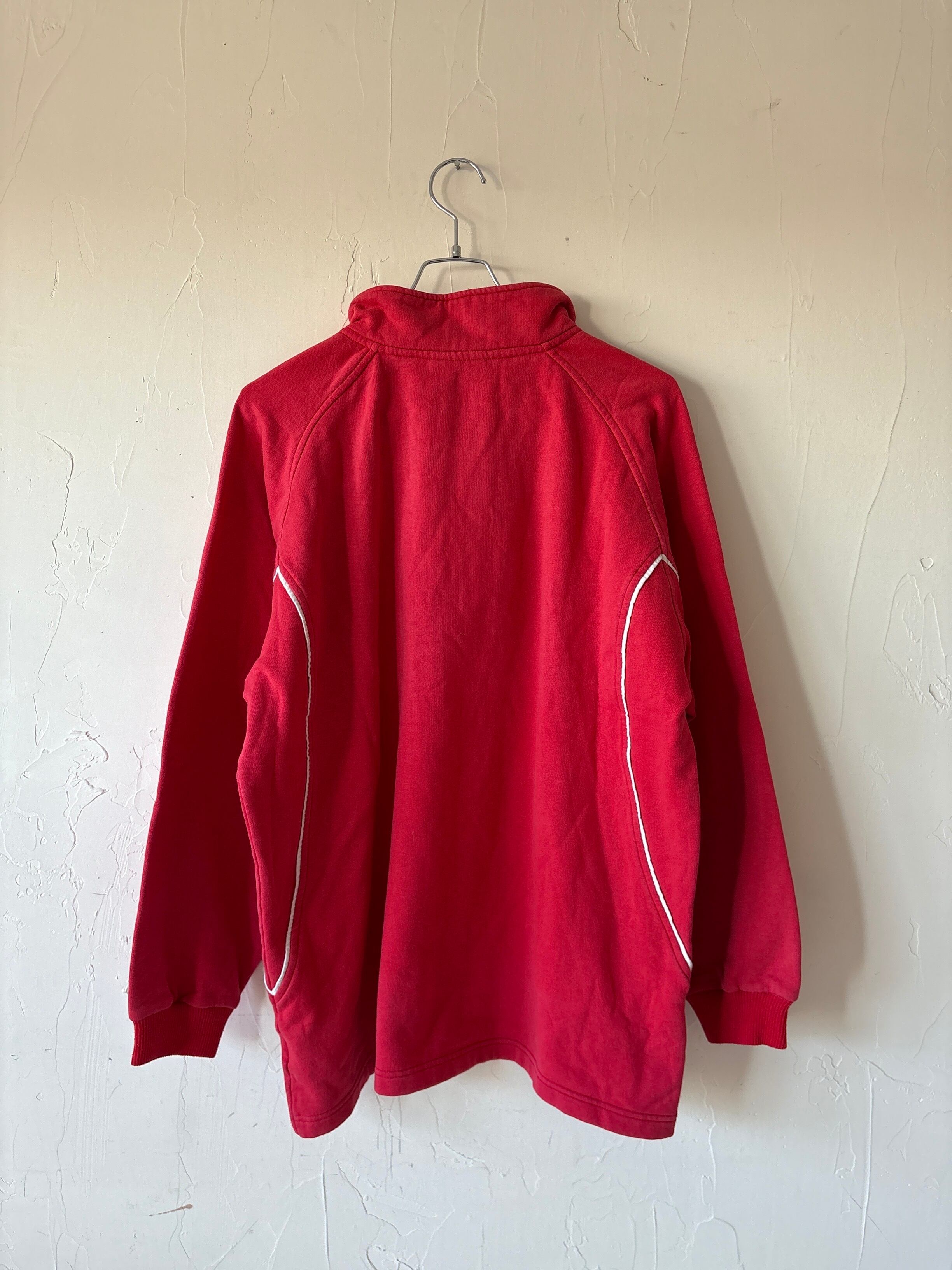 PUMA製のレッドハーフジップスウェットサッカーOLYMPIAKOSロゴ入り