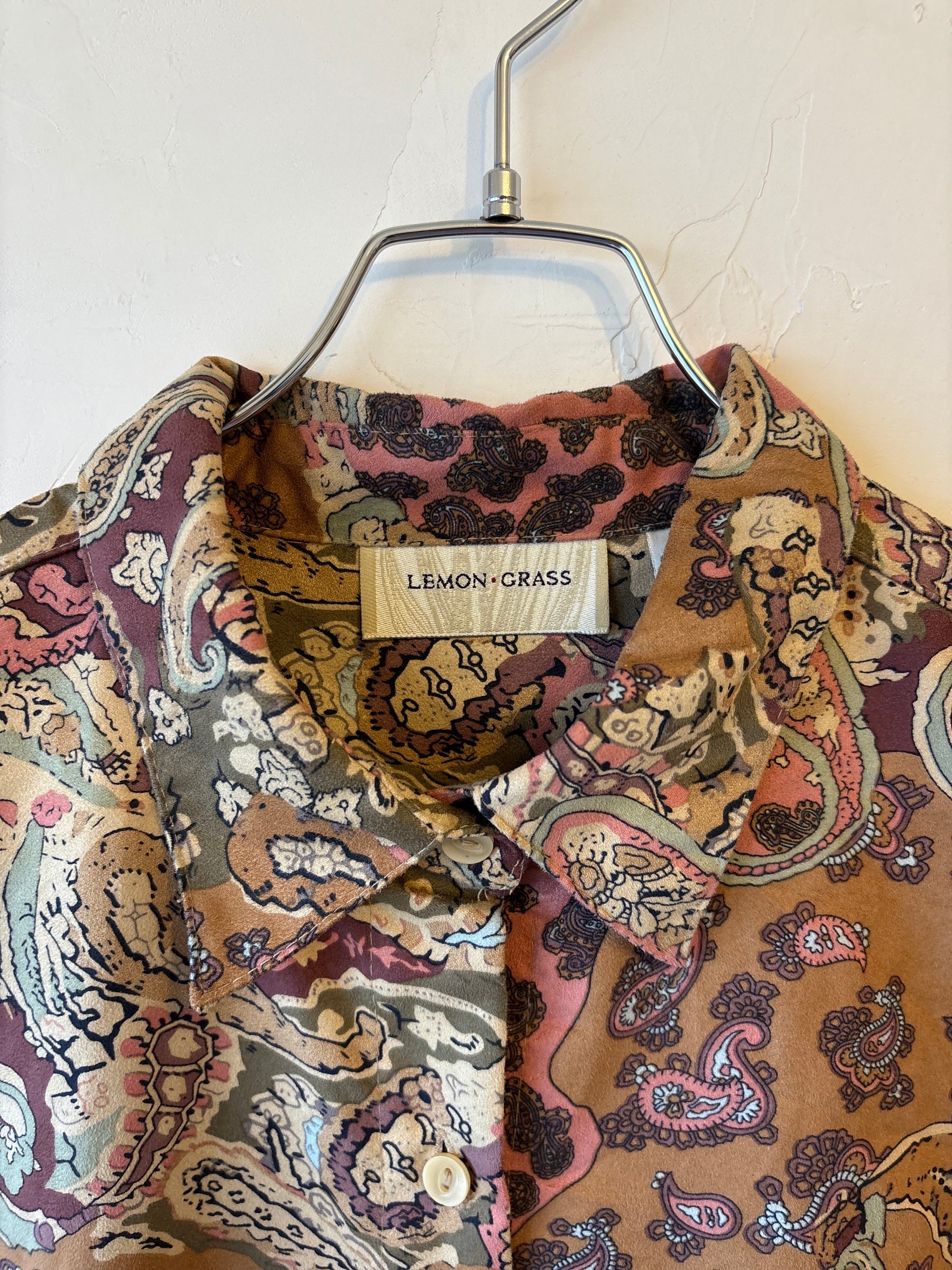 Lemon Grass ペイズリー柄 ベージュピンク 長袖シャツ レディースM