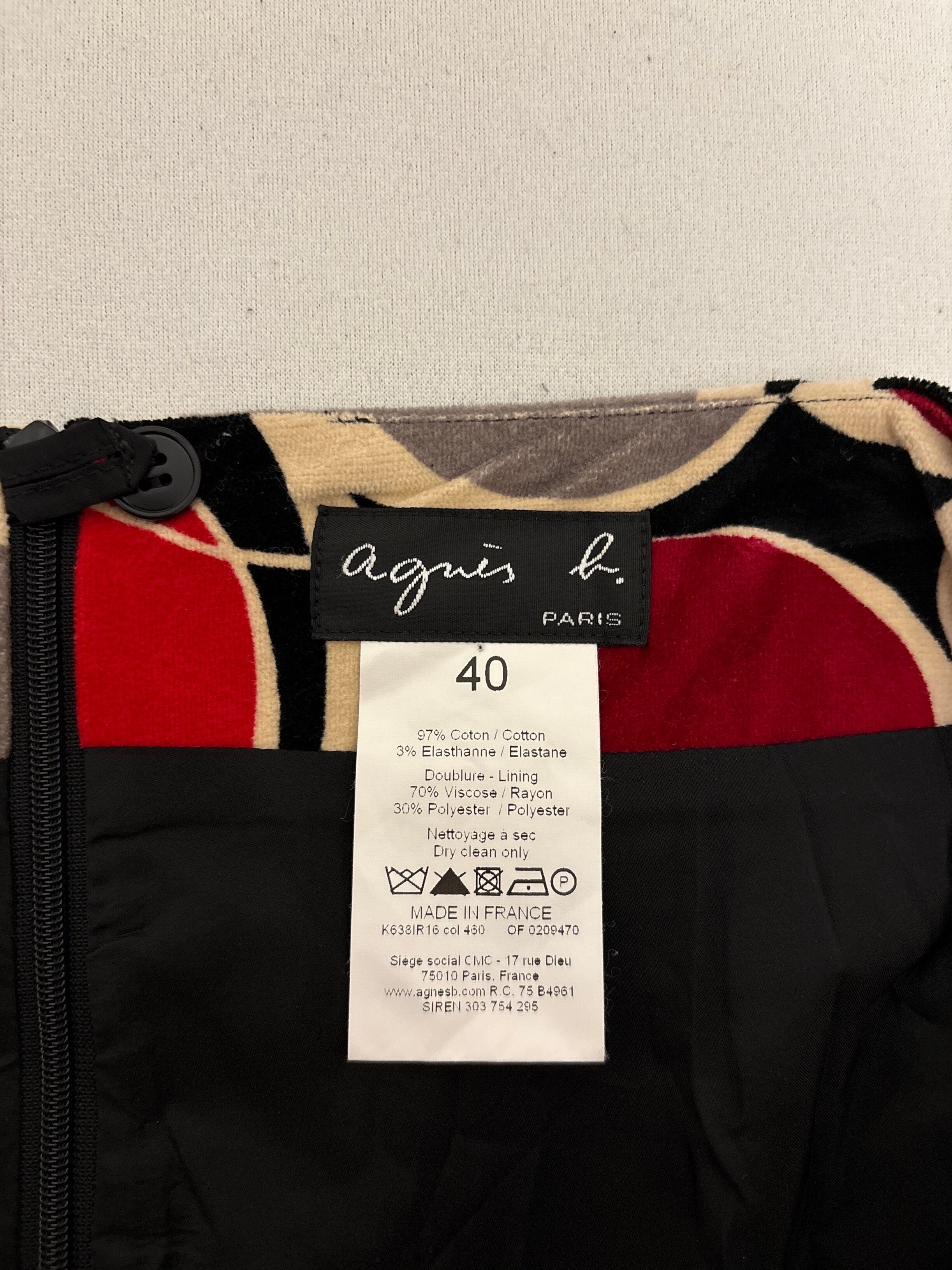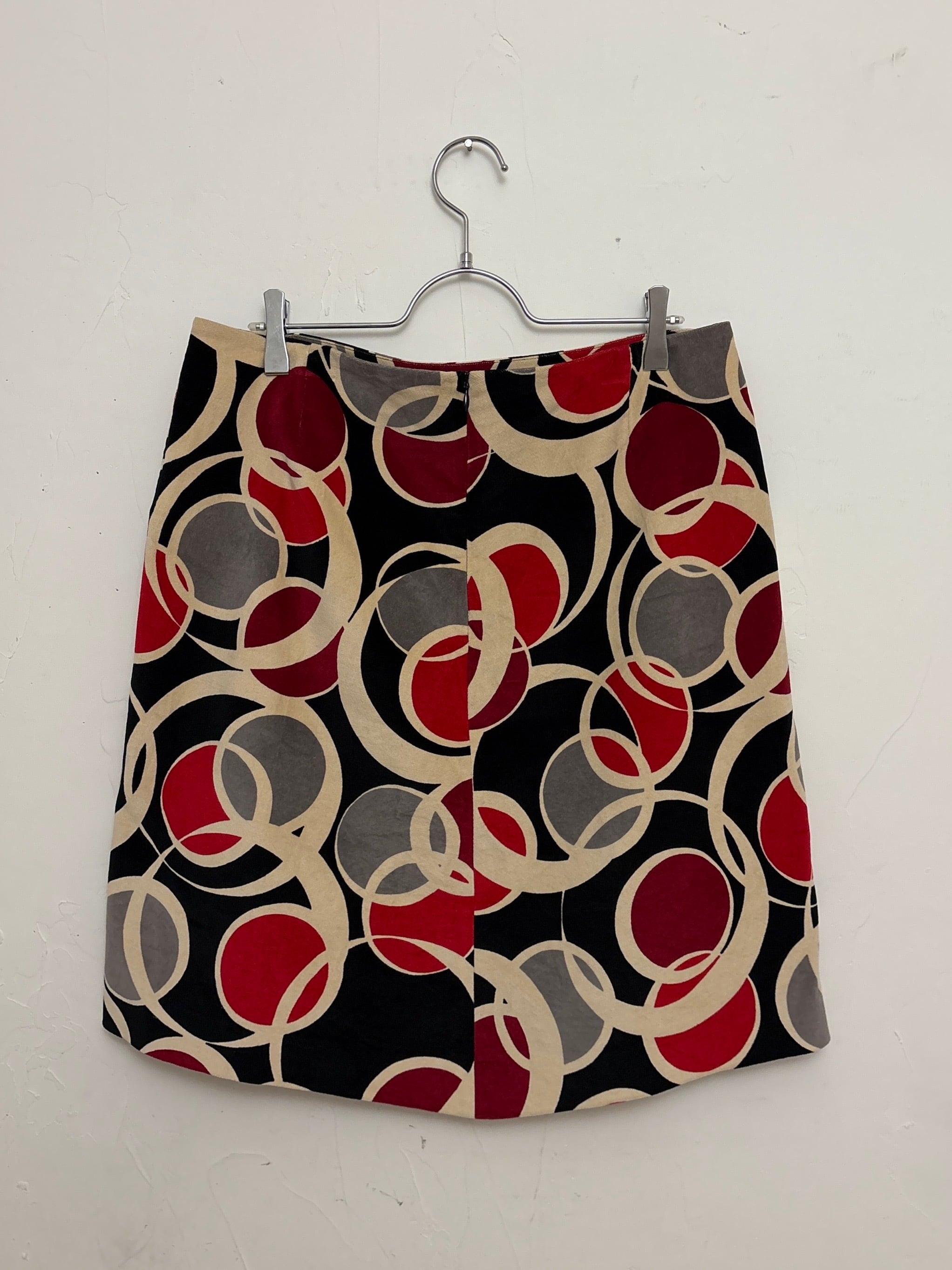 赤グレーブラックのレトロな柄が印象的です。素材はコットンで着やすく、タイツと合わせても素敵です。