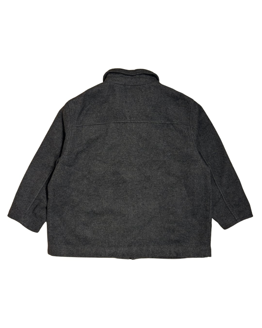 Eddie Bauerのシンプルなフルジップのウールジャケットです。色味は濃いめのグレーで、どんなスタイルにも合わせやすいアイテムです。ポケット付きで機能性もグッドです。コンディションも良く、形もボックスシルエットで野暮ったさが無いスタイリッシュ。