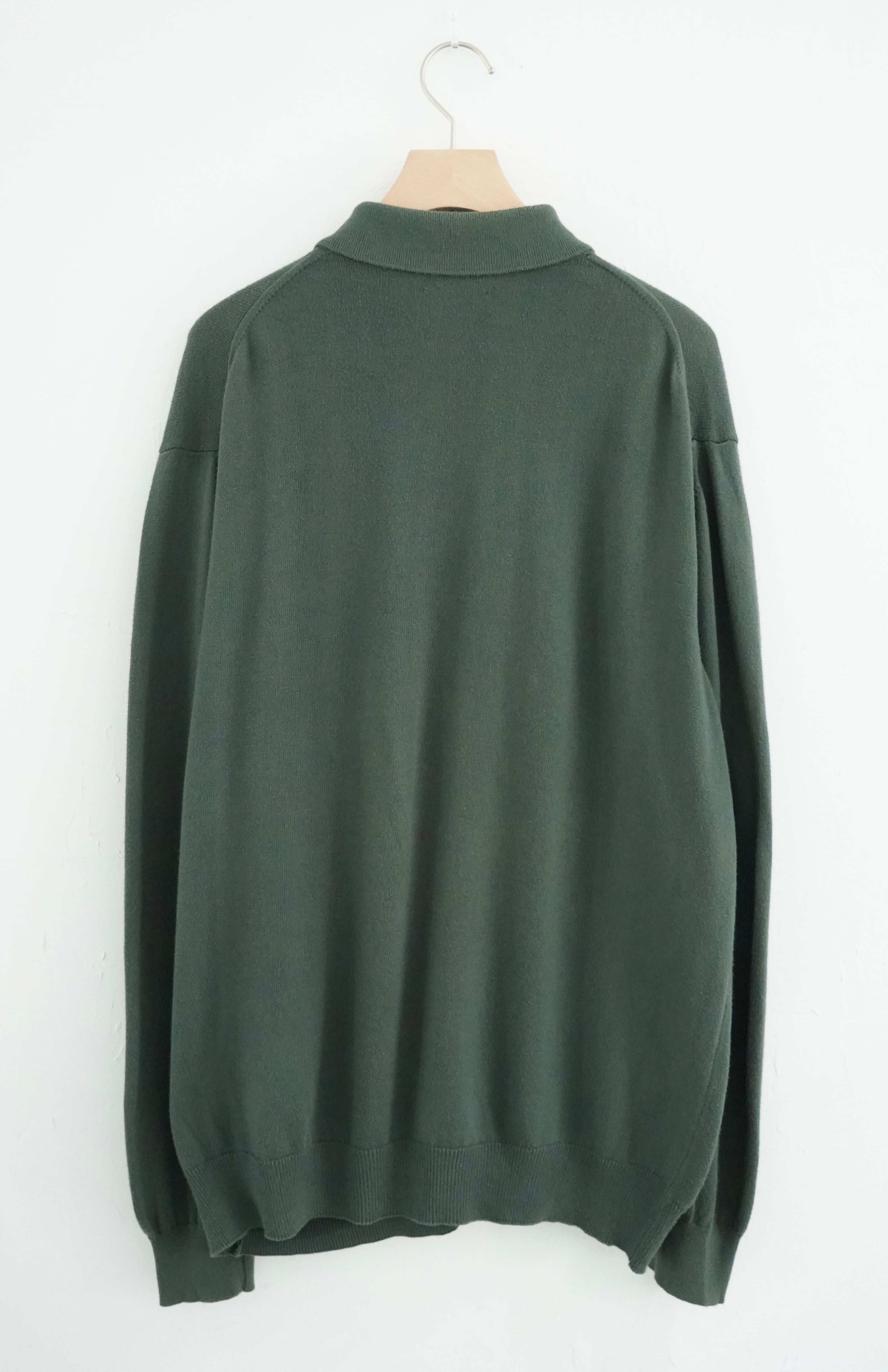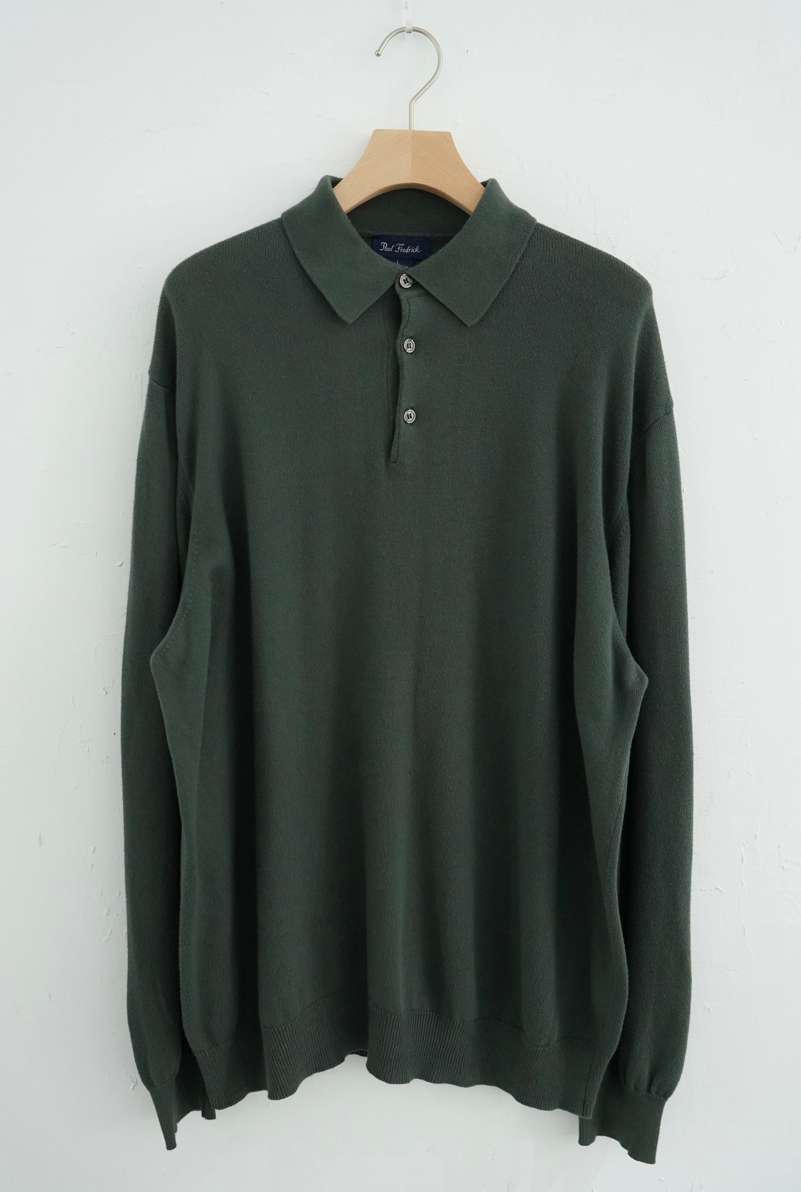 イタリア製 Paul Fredrick ダークグリーン ロングスリーブニットポロ メンズL