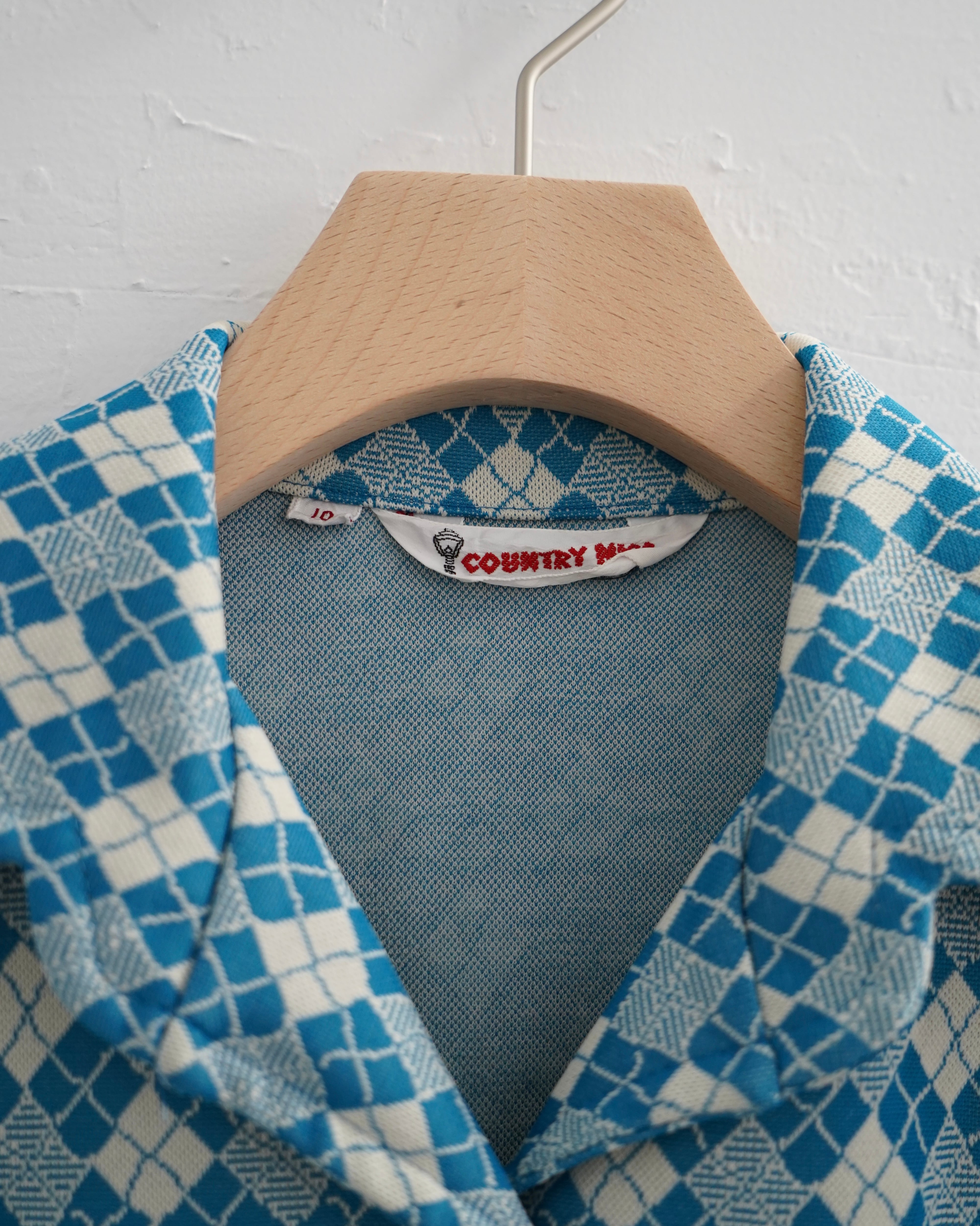 アメリカ製 80s-90s country miss アーガイル柄ブルーシャツ レディースM~L