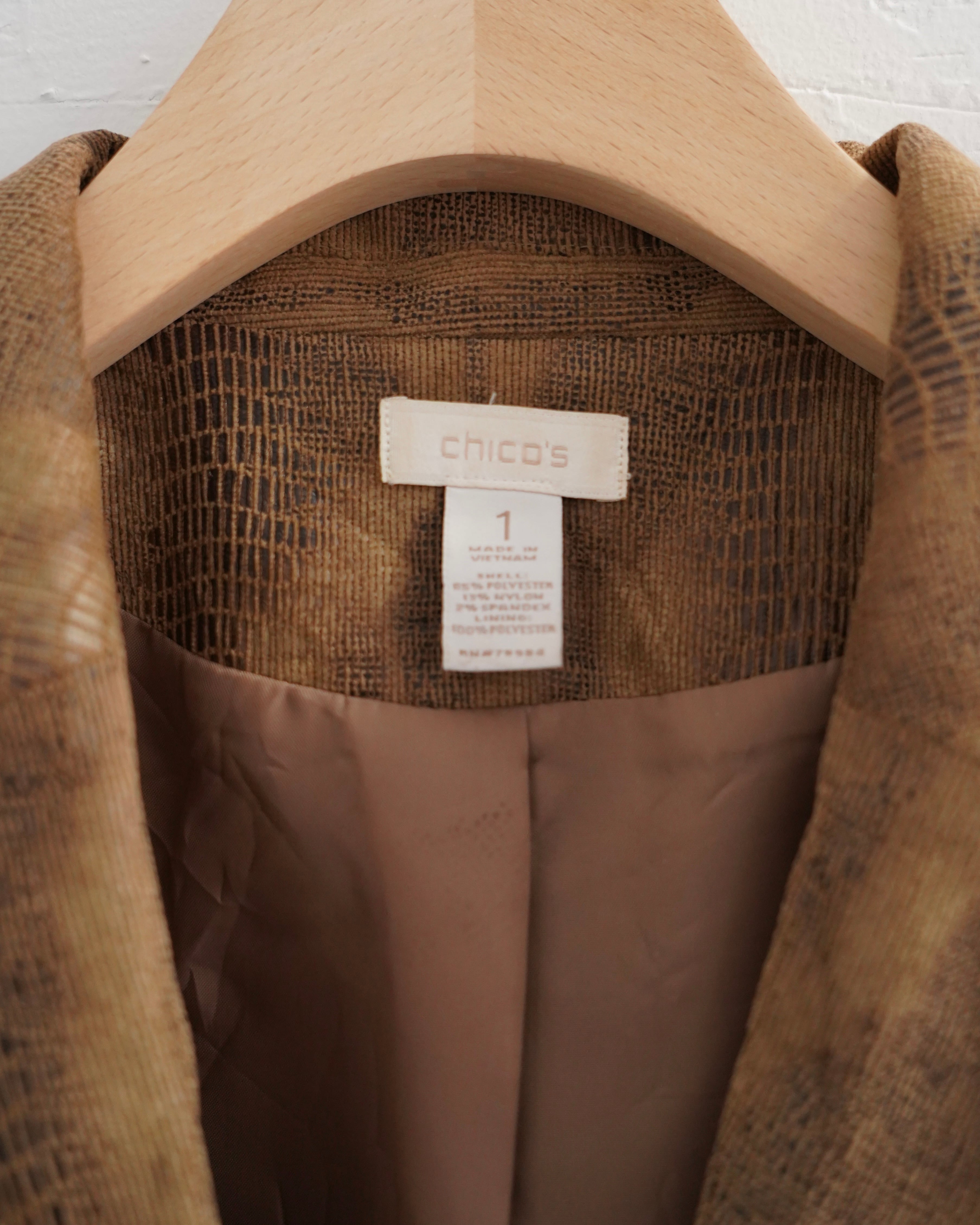 Chico's フェイクスウェードスネークスキン柄ジャケット レディースL