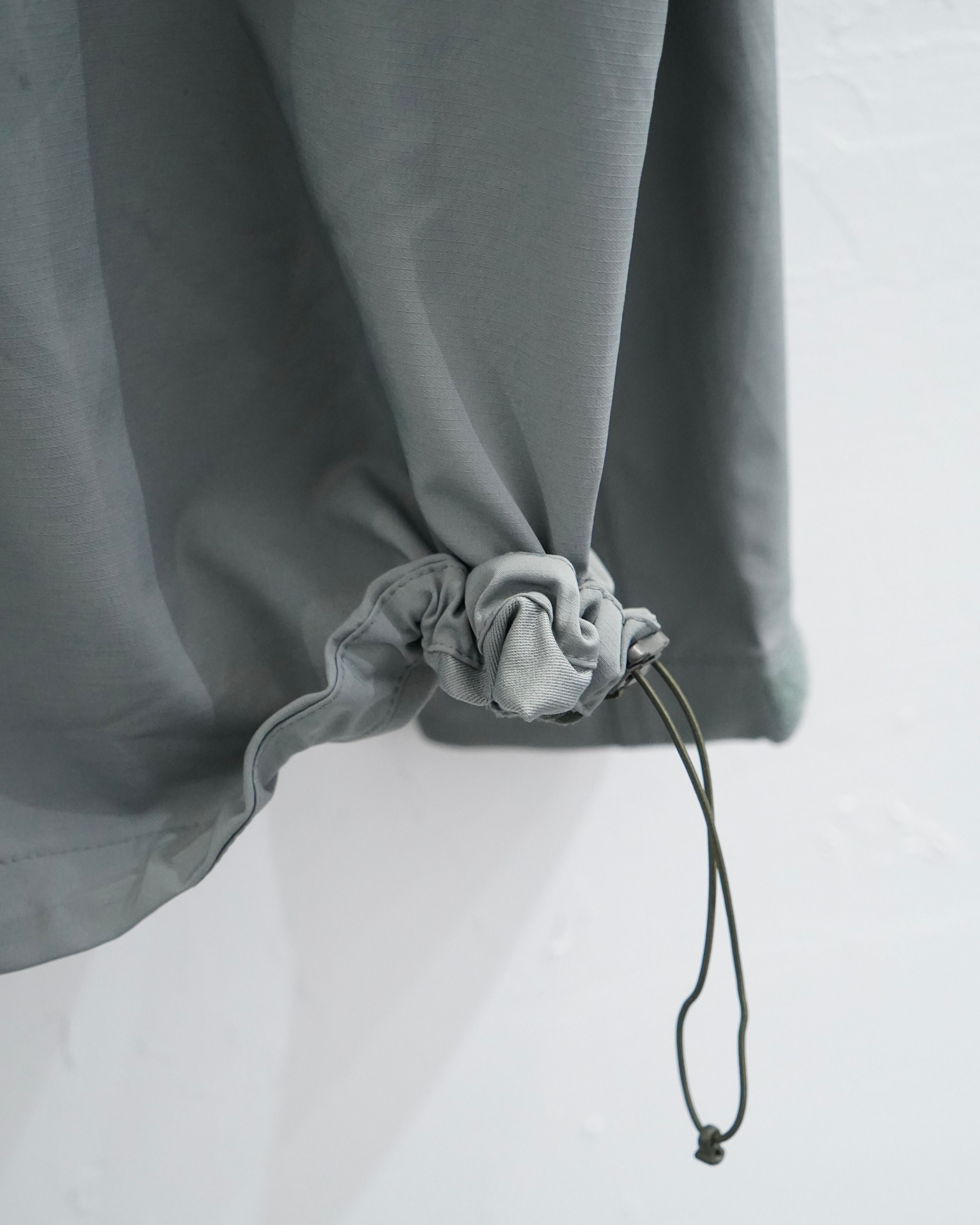 カラーリングも青みがかったグレーで春にはぴったり。サクッと羽織れて一枚あると大活躍します。ドローコードも付いてるので丈の調整が可能です。